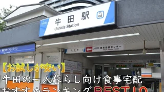 牛田駅で一人暮らしにおすすめの食事宅配をランキング形式で10社ご紹介します。外食より安いだけでなく栄養バランスも優秀なのが宅食のメリット。安いお試しセットにも注目です。